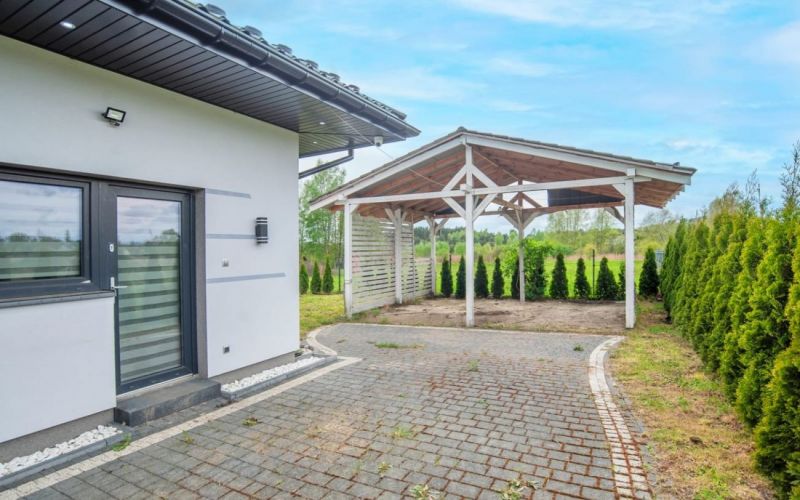 Działka jest bardzo ładnie zagospodarowana ,na działce znajduje się dwustanowiskowa wiata zadaszona